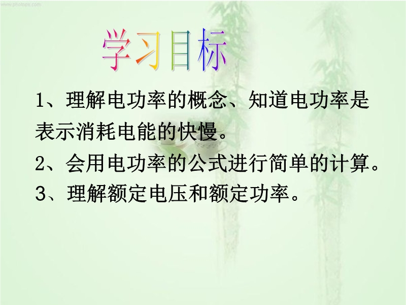 【内容简介】本课件是区级公开课课件,受到了一致好评。共有16张幻灯片。对于电功率概念的建立,逐层深入,符合学生的思维特点,有助于学生理解概念。对于用电器的额定功率和实际功率是本节课的一个难点,本课把课本的演示实验改为学生的探究实验,让学生在自主探究的过程中突破难点。
