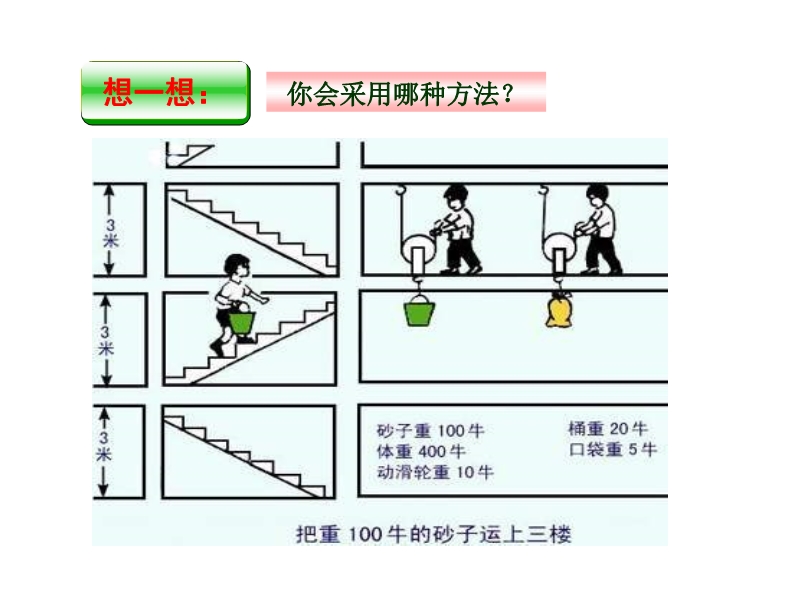 【内容简介】本课件以人教版新教材为基础制作,共由21张幻灯片组成。课件主要引导学生认识了有用功、额外功、总功、机械效率的概念,,课件内有例题和巩固练习,教学设计完整、重点突出。课件制作新颖、操作方便。