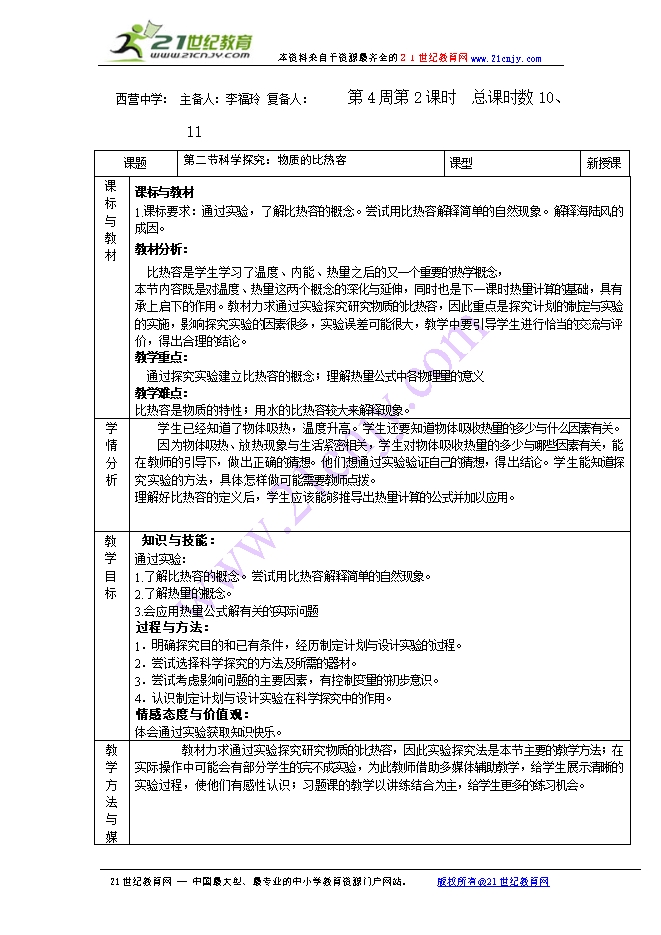 人教版《16.3比热容》ppt+教案课件