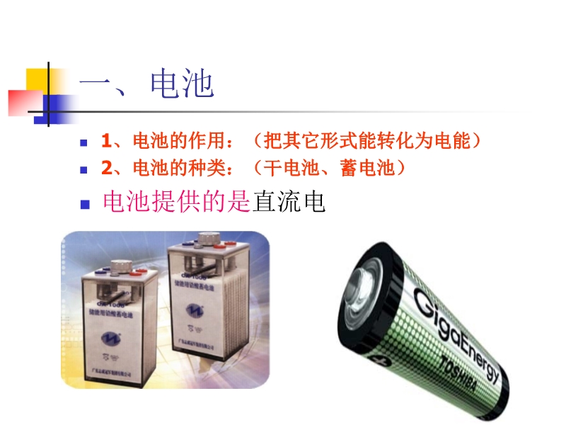 【内容简介】本课件以沪科版新教材第十七章第一节为基础制作 ,共有24张幻灯片。本课件展示了电池的种类,讨论了各种电池的能量转化,重点展示了化学电池的结构、原理及如何处理废旧电池,课件还展示了三种主要的发电方式,如火力发电、水力发电、核能发电等 ,展示了实际的发电机等 。本课件可供教学“电能的产生”时参考使用。