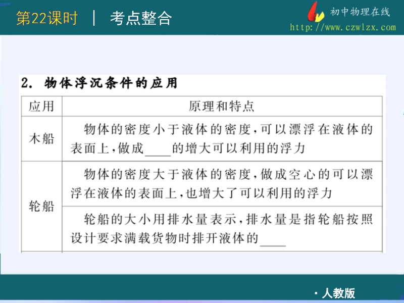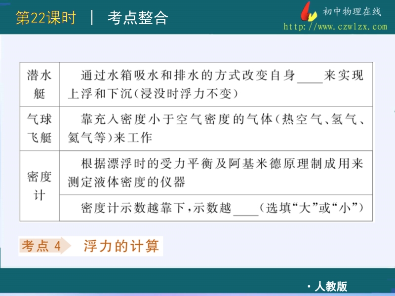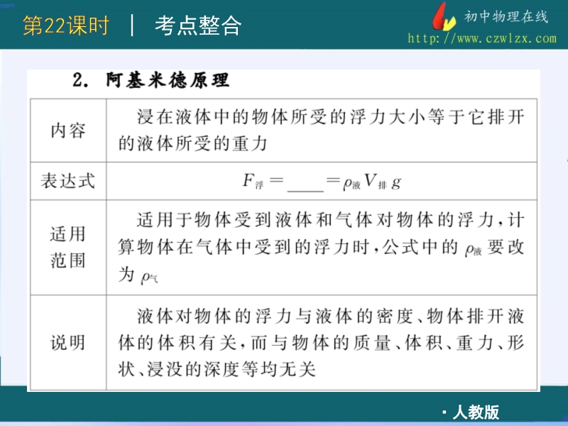 2011届人教版中考物理复习方案《浮力及其应用》ppt课件