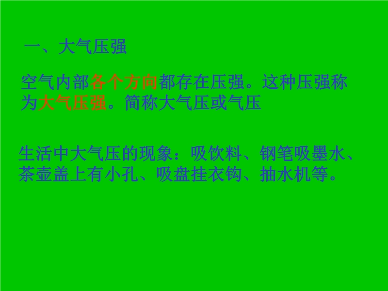 - 2632021-2022学年春人教版八年级物理下册全套精品课课件:9.3 大气压强