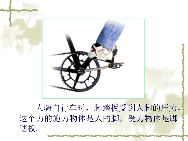 【内容简介】本课件以北师大版新教材第七章第一节为基础制作,共有24张幻灯片。主要引导学生认识了力的概念、施力物体和受力物体,探究了力的作用是相互的,引导学生学习了力的三要素,如何表示力,探究了力的作用效果,讨论了力的分类等。课件制作新颖、精彩,可供教学“力”时参考使用。