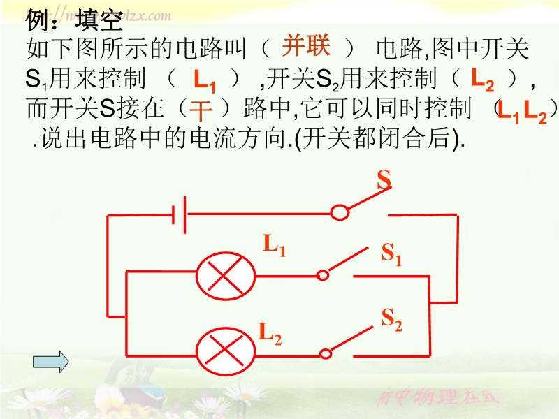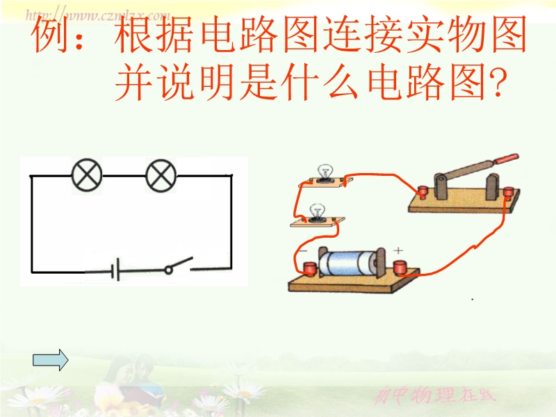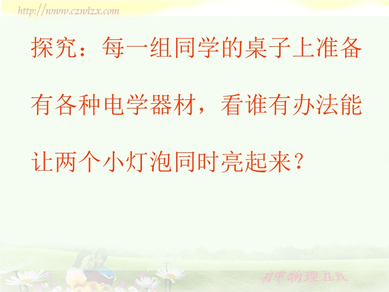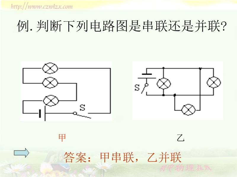 【内容简介】本课件以人教版新教材第五章第三节为基础制作,共14张幻灯片和3个flash组成。课件引导学生通过具体的实验活动认识了串联电路和并联电路,并通过flash模拟实验探究了串联电路和并联电路的特点,较生动、形象、具体,课件还精选了适量的练习。
