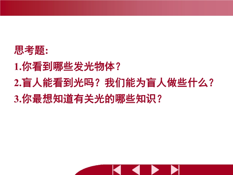 【内容简介】本课件以北师大版新教材第五蔁第一节为基础制作,共有25张幻灯片和3个flash组成。主要引导学生认识了光源的概念和光的传播特点,分析了光的直线传播在日常生活中引起的现象:影子的形成、小孔成像、日食、月食的形成等,课件借鉴了部分网络上的flash化解了教学的难点。