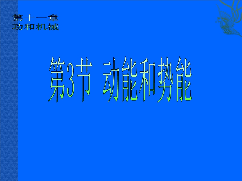 【内容简介】新人教版《11.3动能和势能》ppt课件,本课件以人教版新教材第十一章第三节为基础制作,共有31张幻灯片。课件通过生活实例引导学生认识了能量的概念、动能的概念、势能的概念,并引导学生通过实验探究了动能与哪些因素有关。认识了重力势能与哪些因素有关、弹性势能与哪些因素有关等,