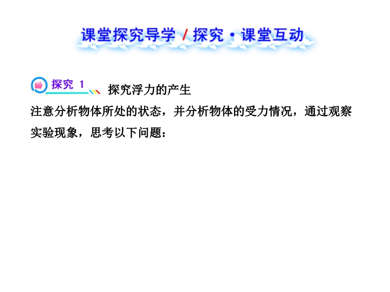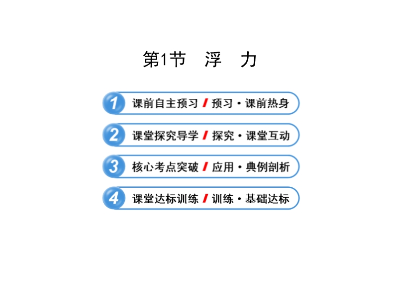 【内容简介】人教版精讲精练系列复习课件《10.1浮力》ppt课件.课件共49张幻灯片组成,分四个部分组成:1课前自主预习:以填空的形式呈现,对教材的主要知识点温习,使得知识网络化,2课堂探究导学环节:在线本节重难点知识点:浮力的影响因素,浮力的方向等进行解析,是上课的重点部分,3,核心考点突破环节:通过例题的呈现提高学生的能力,4课堂达标训练:进一步培养学生独立思考的能力。课件中的习题、例题都是精选自2011、2012年全国中考试题。