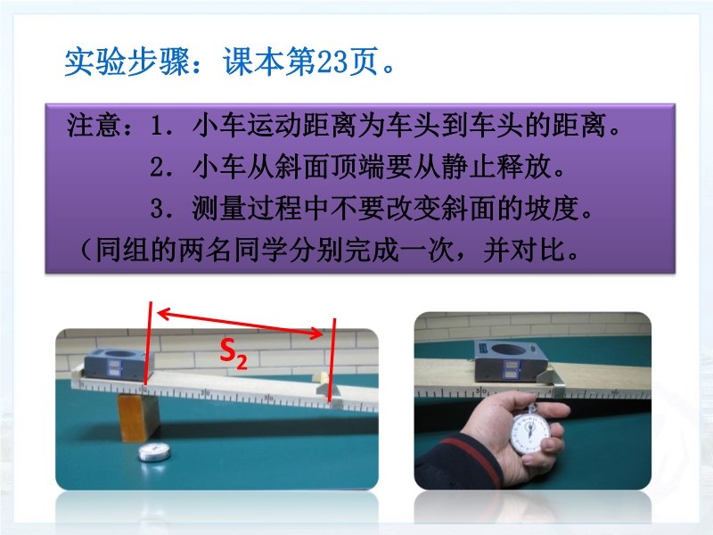 【内容简介】本课件以人教版新教材第一章第四节《1.4测量平均速度》为基础制作,共有13张幻灯片。课件主要引导学生探究了如何测量小车在斜面上滑动时的平均速度,重点讨论了如何选择实验器材、如何设计实验,还引导学生讨论了如何分析实验数据等,最后展示了超声测速仪等。本课件可供教学“测量平均速度”时参考使用。