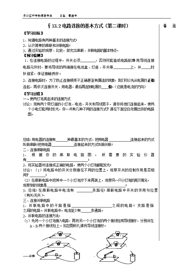 京口区中学:苏科版《13.2电路连接的基本方式》ppt+教案课件