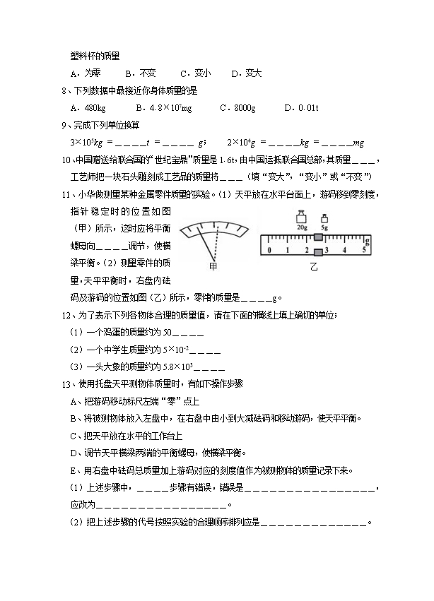 - 13812024-2025新人教版八年级物理上册导学案:6.1《质量》导学案