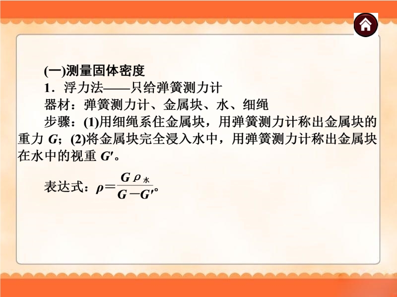 【内容简介】2014届中考物理专题复习《专题3 力学实验探究》ppt课件,2014年中考二轮专题复习课件,课件共有54幻灯片,注重知识点之间的内在联系,本课件涉及的内容为:特殊方法测密度 测量机械效率,进一步提高学生的运用知识的能力,课件的涉及注重思维的点拨,方法的归纳,精选了2012-2013年中考试题供中考复习参考使用。