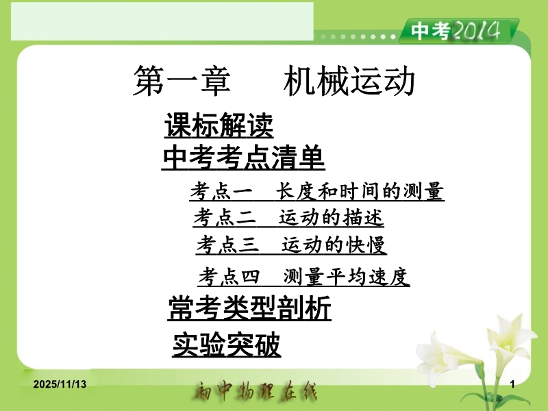 人教版2014中考备考策略《第1章 机械运动》ppt课件