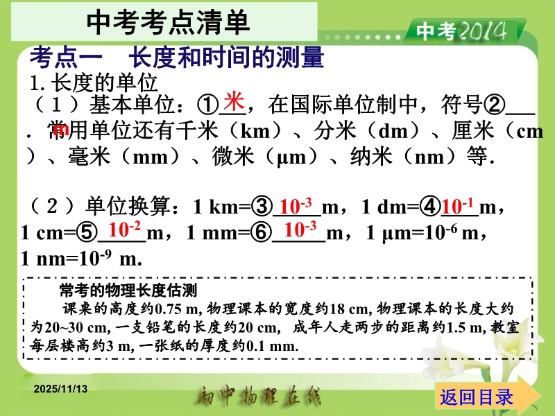 - 402025年中考物理基础知识复习课件:第1讲 机械运动
