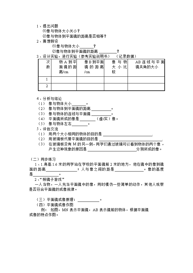 优质课大赛获奖系列课件:人教版《4.3平面镜成像》ppt+教案+学案+反思建议+配套单元测试