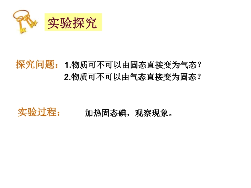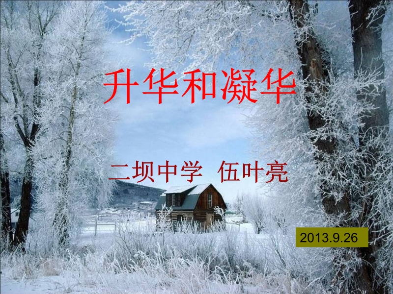 【内容简介】芜湖市二坝中学《3.4升华和凝华》课件,共有13张幻灯片和2个flash动画。课件引导学生认识了日常生活中的升华和凝华现象,再通过flash向学生展示了碘的升华和凝华过程过程。课件重点引导学生解释了生活中升华和凝华现象,及其运用。课件用动画模拟了自然界水的循环等。