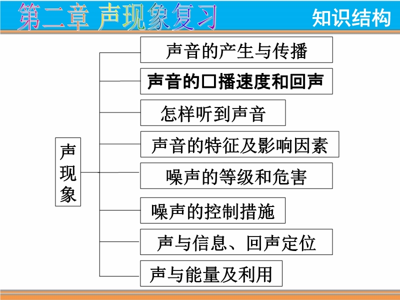 【内容简介】人教版《第二章 声现象》PPT复习课件,共有47张幻灯片。首先展示了本章的知识框架,总结复习了每一节的知识点,回顾了每一节的学习过程,课件第二部分精选了典型试题进行强化练习提高学生的运用知识的能力,课件的第三部分回顾了宁夏2011-2014年中考声现象的试题。