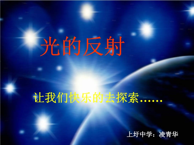 【内容简介】上圩中学:人教版《4.2光的反射》ppt课件,共有39张幻灯片,课件以游戏为切入口,向学生展示了生活中的反射现象,引导学生探究了光的反射规律,并用视频演示了这个实验,总结了光的反射定律等,教学过程中能紧密联系生活实际,将物理与生活相结合。