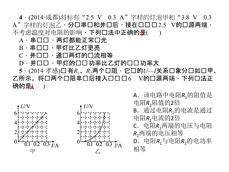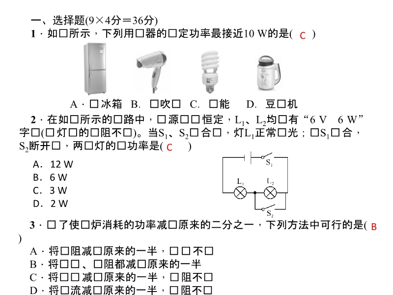 【内容简介】人教版:四清导航同步课件(周周清)《第十八章 电功率》ppt课件(两课时),课件共19张幻灯片,课件从结构上主要设计选择题、填空题和实验计算题,按照教材内容,将教材分割成几个部分,同时精选近几年中考试题(题量大约31道左右,同时提供了答案),对照考点加强训练,培养学生运用知识的能力,注重知识的整合,教师可以将ppt内容转化成word形式,制成学案可以课前让学生独立换成效果更佳。