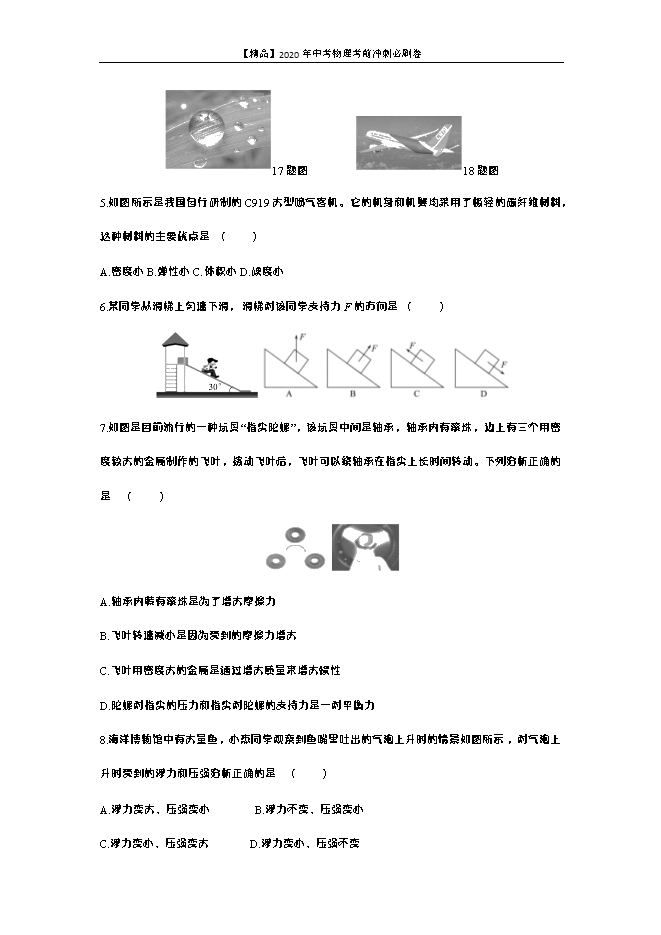 - 1922025年中考物理高频易错考前预测题--质量和密度(含解析)