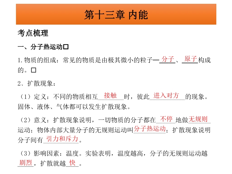 广东省2015中考物理冲刺复习课件:《第13章+内能》PPT课件