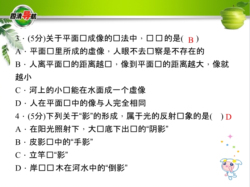 四清导航课件:人教版《4.3平面镜成像》知识点训练ppt课件(免费)