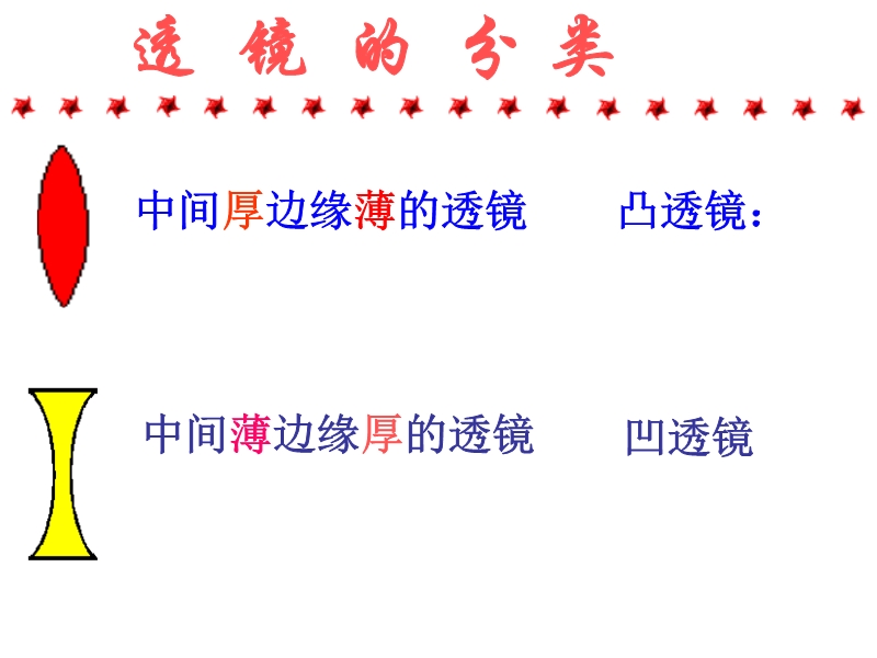 【内容简介】人教版:《5.1透镜》ppt课件,共有34张幻灯片。课件引导学生认识了两种透镜,引导学生学会辨别两种透镜。课件还引导学生探究了两种透镜对光的作用,认识了有关透镜的几个名词,引导学生讨论了如何测量凸透镜的焦距等。