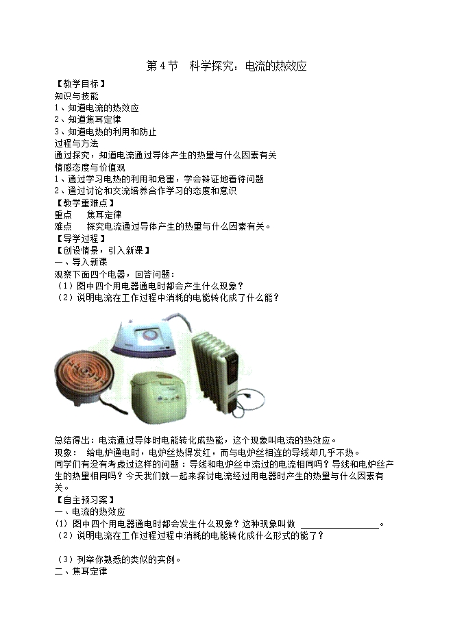 2016年秋沪科版九年级物理教学资源包(课件、教学案):16.4科学探究:电流的热效应(免费)