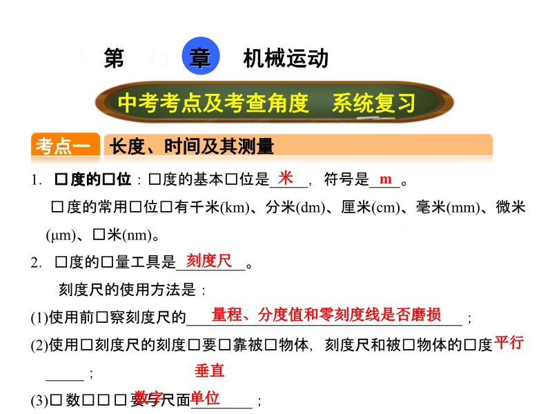 【点拨中考】2017年中考物理(全国版)总复习课件:第十章 机械运动(共22张PPT)