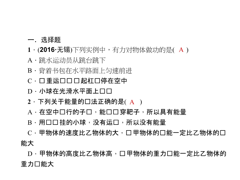 【内容简介】【原创新课堂】2017春人教版八年级物理下册课件:《第十一章 功和机械能》章末复习备考训练