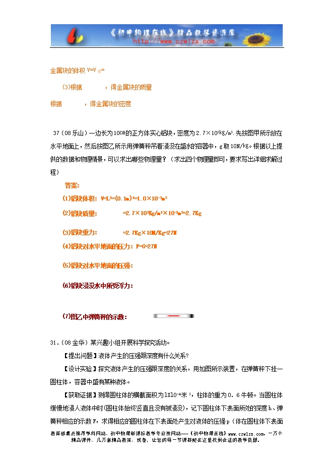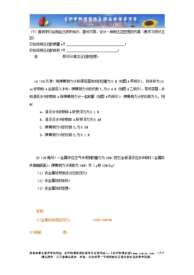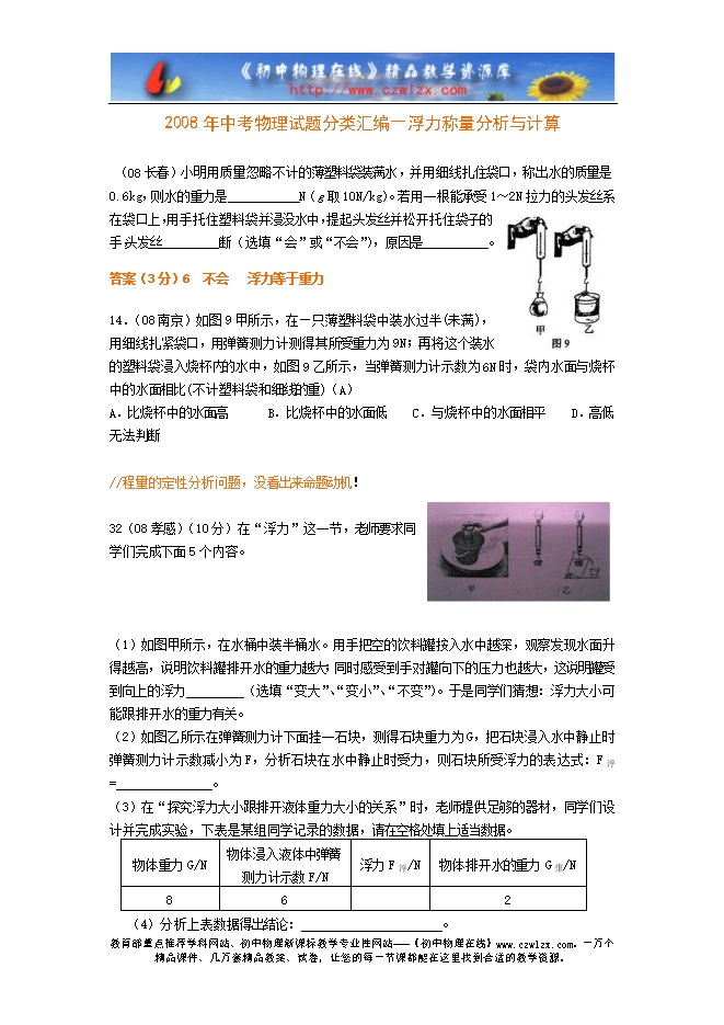 32(08孝感)(10分)在“浮力”这一节,老师要求同学们完成下面5个内容。