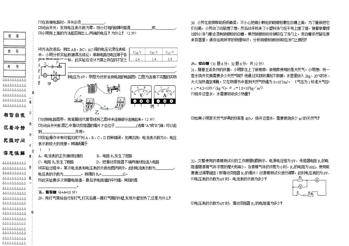 黑龙江省鹤岗市绥滨五中2017-2018年上学期九年级物理上学期期末试卷(无答案)