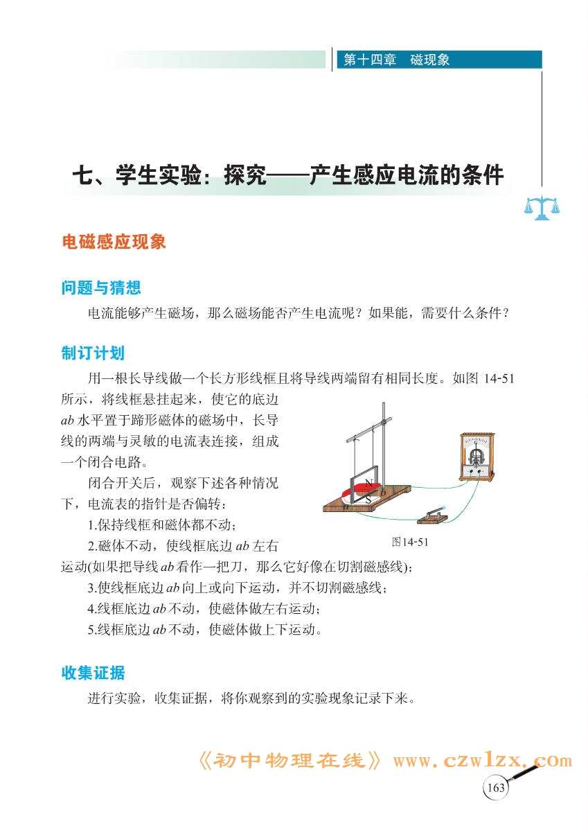 2013新北师大版九年级《14.7探究--产生感应电流的条件》电子课本