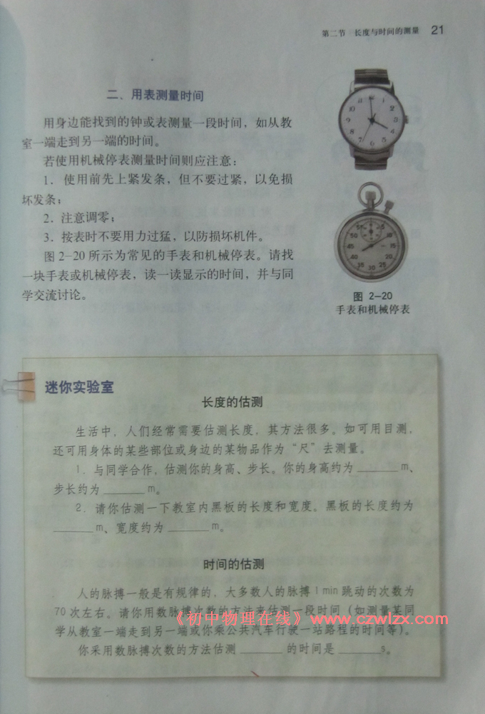 2012新沪科版八年级《2.2长度与时间的测量》电子课本