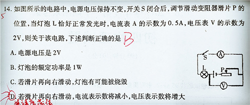 在平时做物理题时,当我们遇到选择题时,千万不要选了其中一个选项后,就不再看别的选项!也就是说我们做选择题时,既要知道所选择的选项为什么是正确的,更要懂得其余选项为什么是错误的!