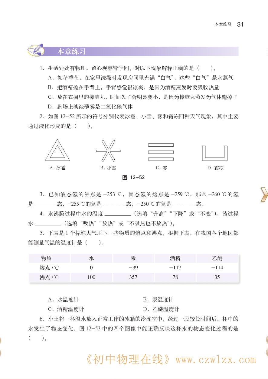 2013新沪科版九年级《第十二章 温度与物态变化》章首页和本章练习