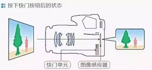 2.按下快门—反光镜抬起光圈收缩快门打开反光镜落下光圈复位